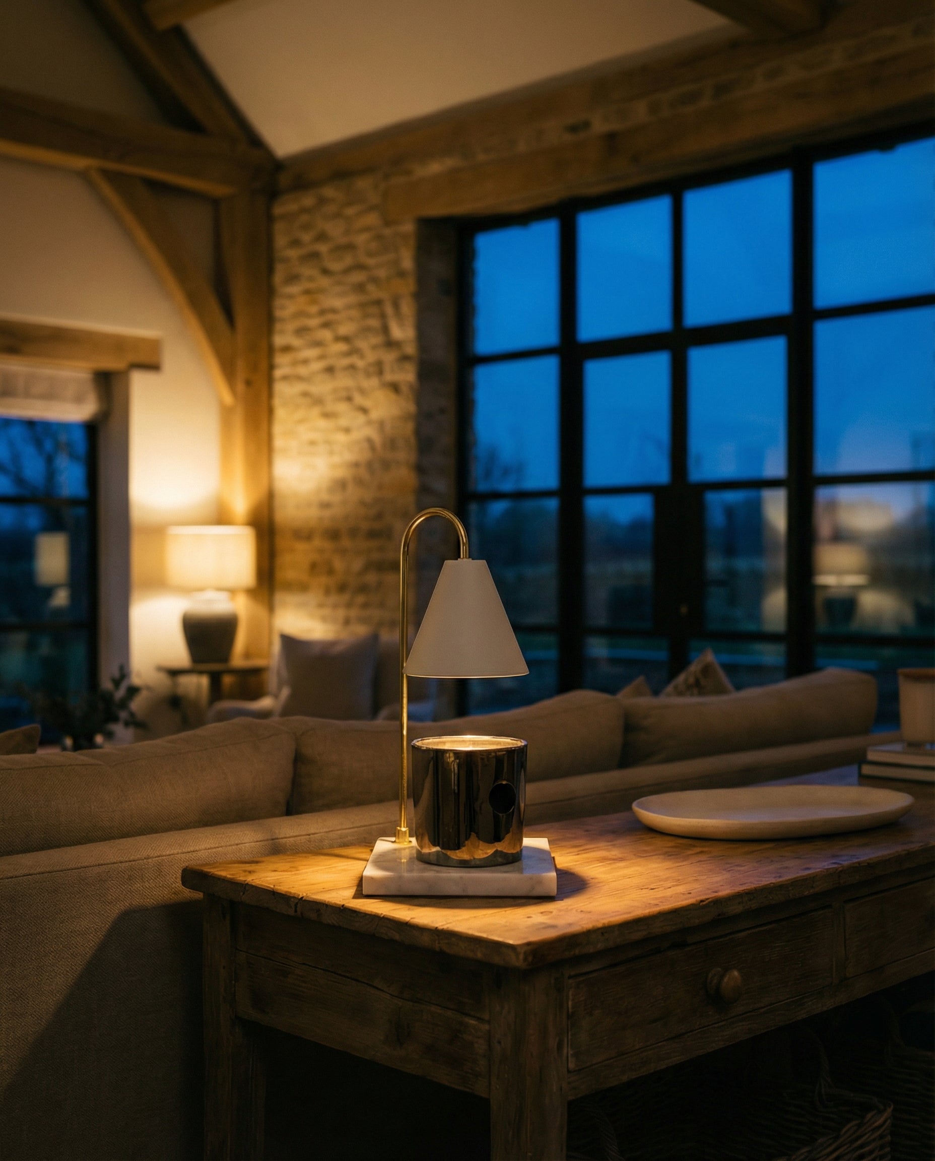 While the top-down lamp delivers consistent heat for even melts and full fragrance.