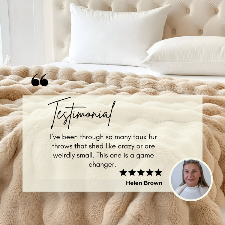Our throw is designed with a low-shed faux fur blend, unlike many cheaper alternatives. While minimal shedding can occur at first (as is normal with plush materials), it dramatically reduces after a gentle shake and the first wash. We recommend air drying to preserve softness and reduce static.